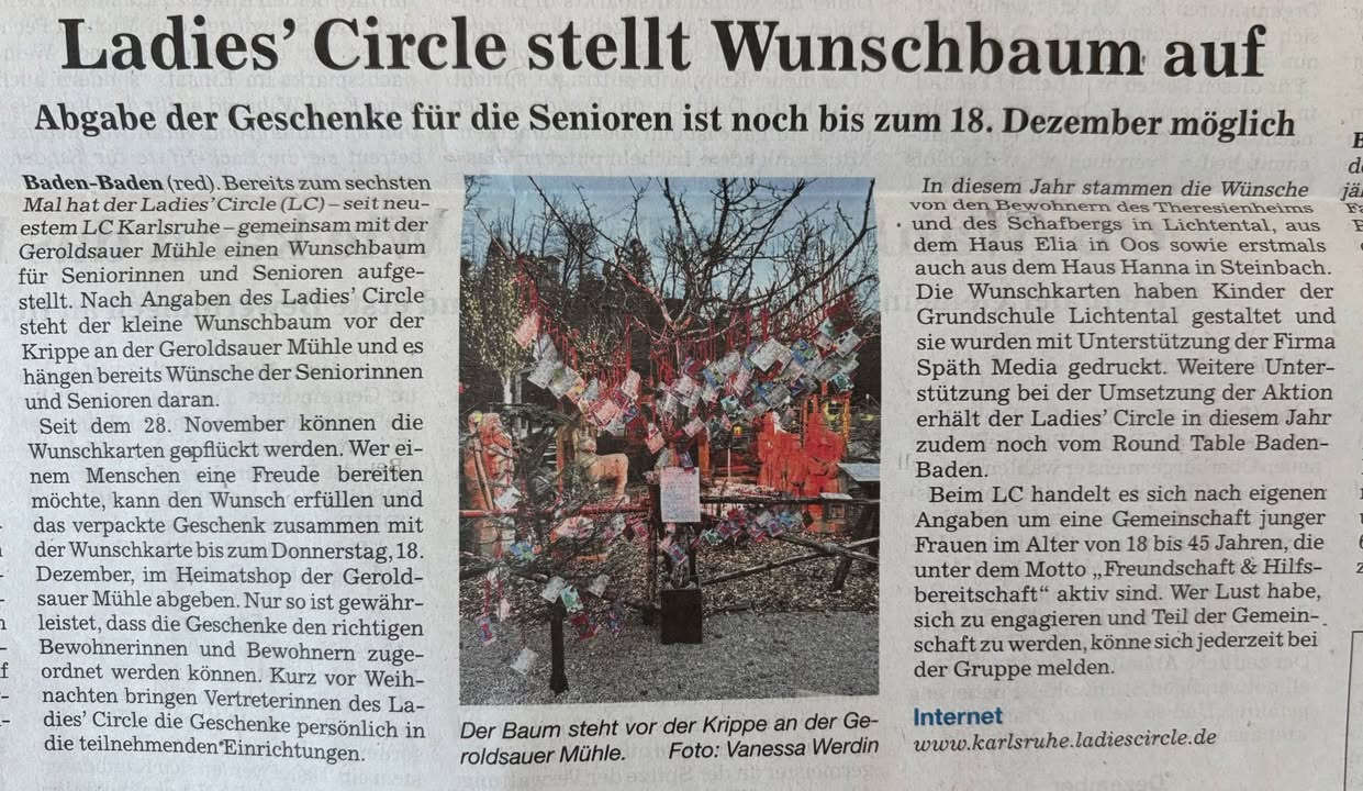 Ladies' Circle 81 Karlsruhe - LC81 ✨️ Wunschbaum-Aktion in der Geroldsauer Mühle